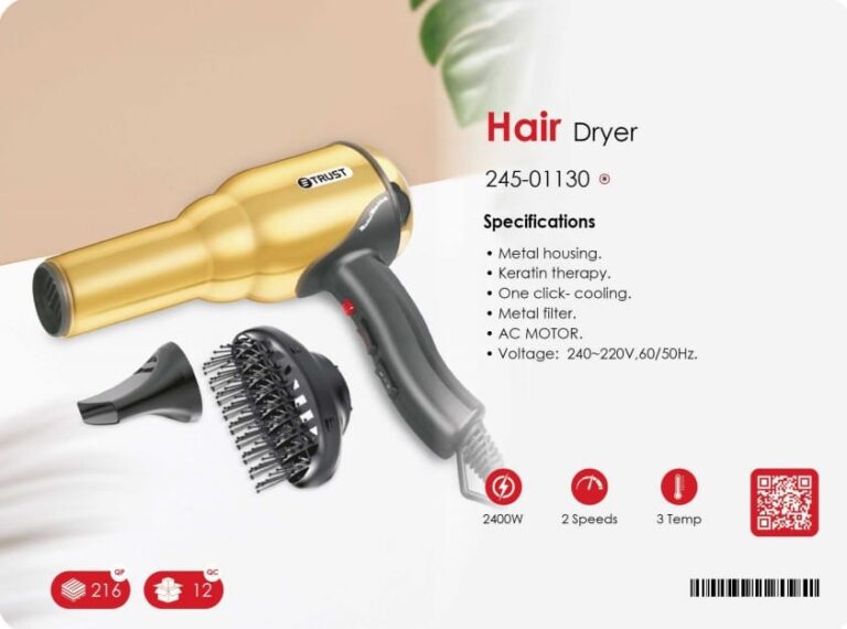 لأنه يجمع بين الأداء القوي والراحة في الاستخدام مع ميزات متعددة تسمح لك بتجفيف شعرك بسرعة وفعالية مع الحفاظ على صحته ولمعانه. تصميمه العملي وخيارات التحكم في الحرارة والسرعة تجعله مناسبًا لجميع أنواع الشعر، سواء كان ناعمًا أو كثيفًا. كما يضمن زر الهواء البارد تثبيت التصفيفة لفترة أطول، مما يمنحك نتائج احترافية في منزلك أو الصالون.