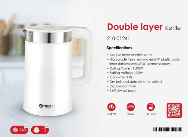 قدرة 2400 واط لغليان الماء بسرعة وكفاءة.