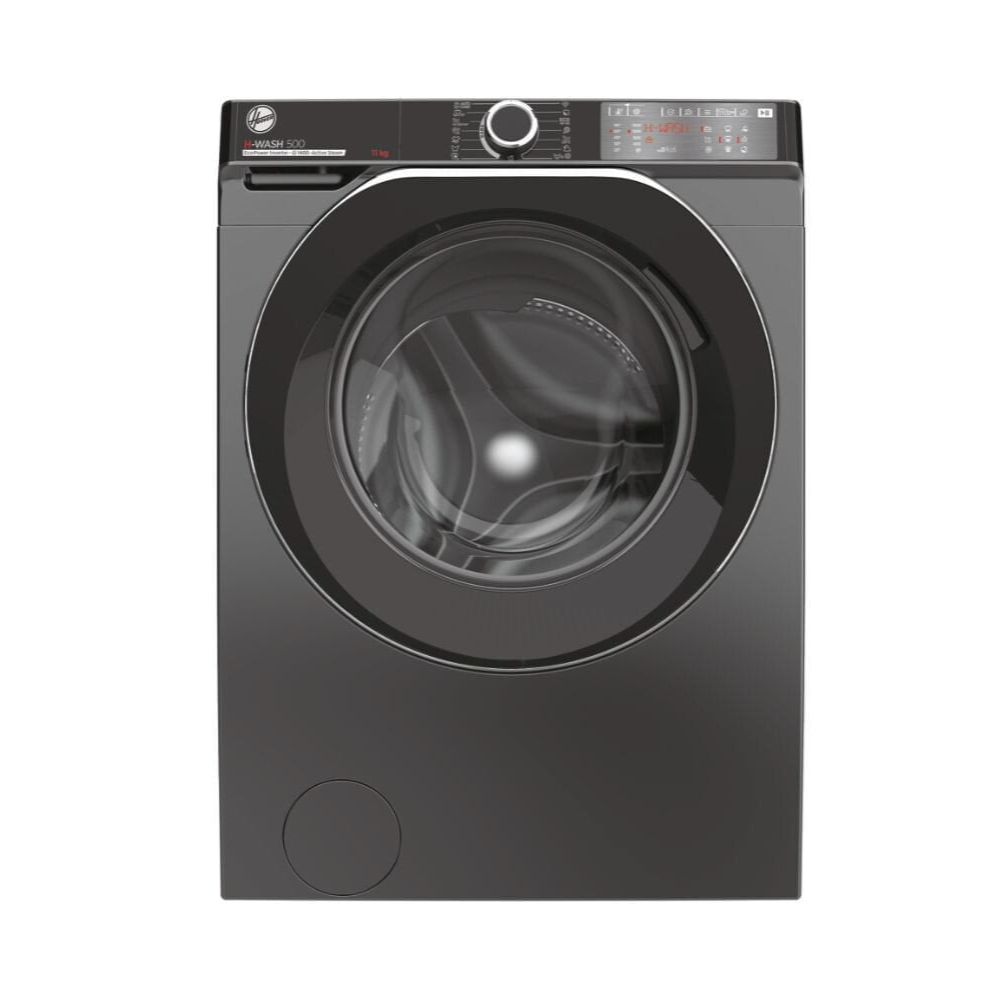 غسالة Hoover HW500 Silver بسعة 11 كجم تقدم تجربة غسيل متطورة بفضل تقنيات التحكم الذكي والتوفير في الطاقة.